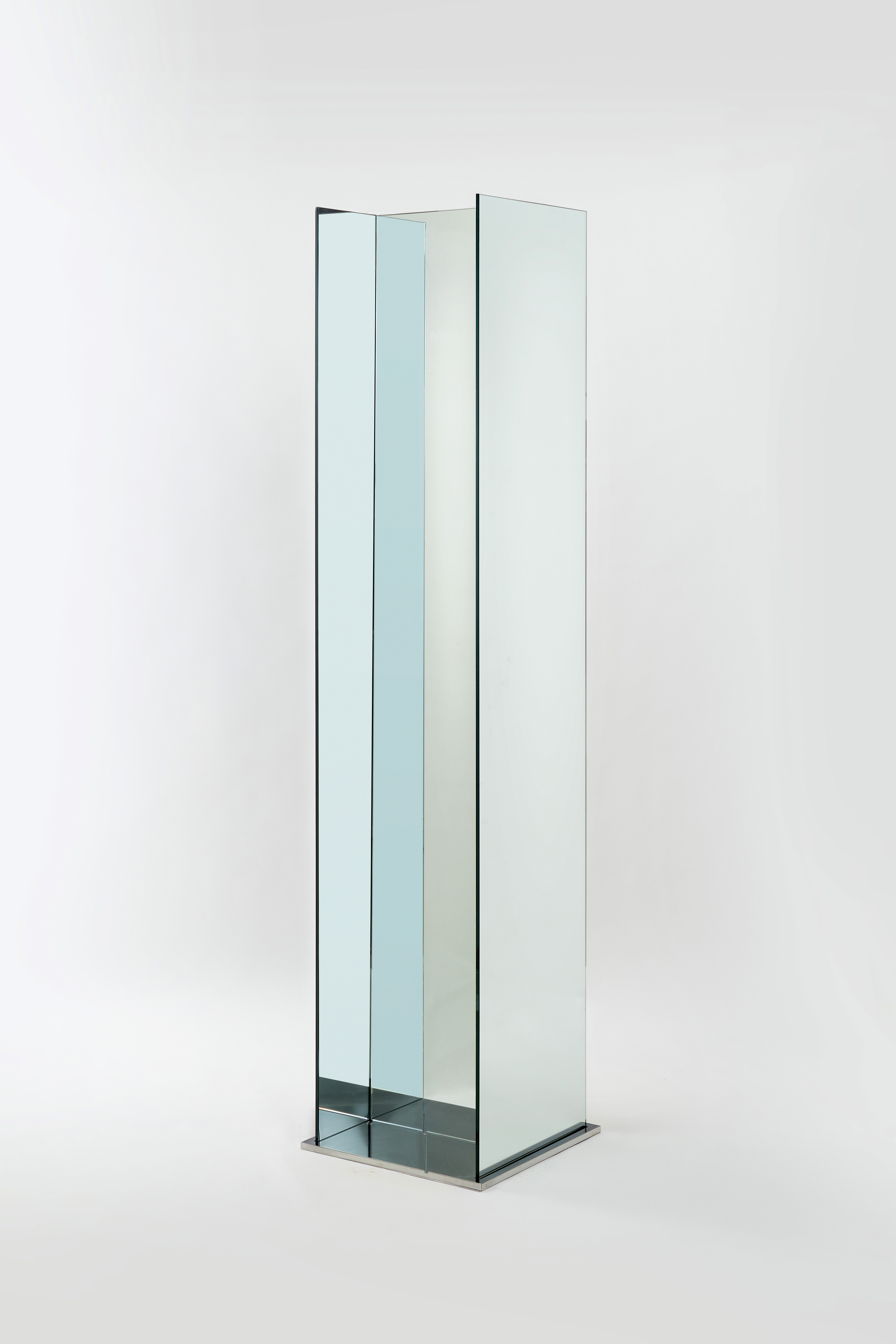 무한히 반복되는 거울은 빨려 들어갈 듯이 환상적으로 표현됩니다. H구조를 사용하여 구조적으로 강하며 거울의 하단에는 금속판으로 이루어져 안정적으로 지탱합니다.UV접착, 접합유리로 만들어져 충격, 흡수력이 우수하여 사고로부터 안전한 제품입니다.