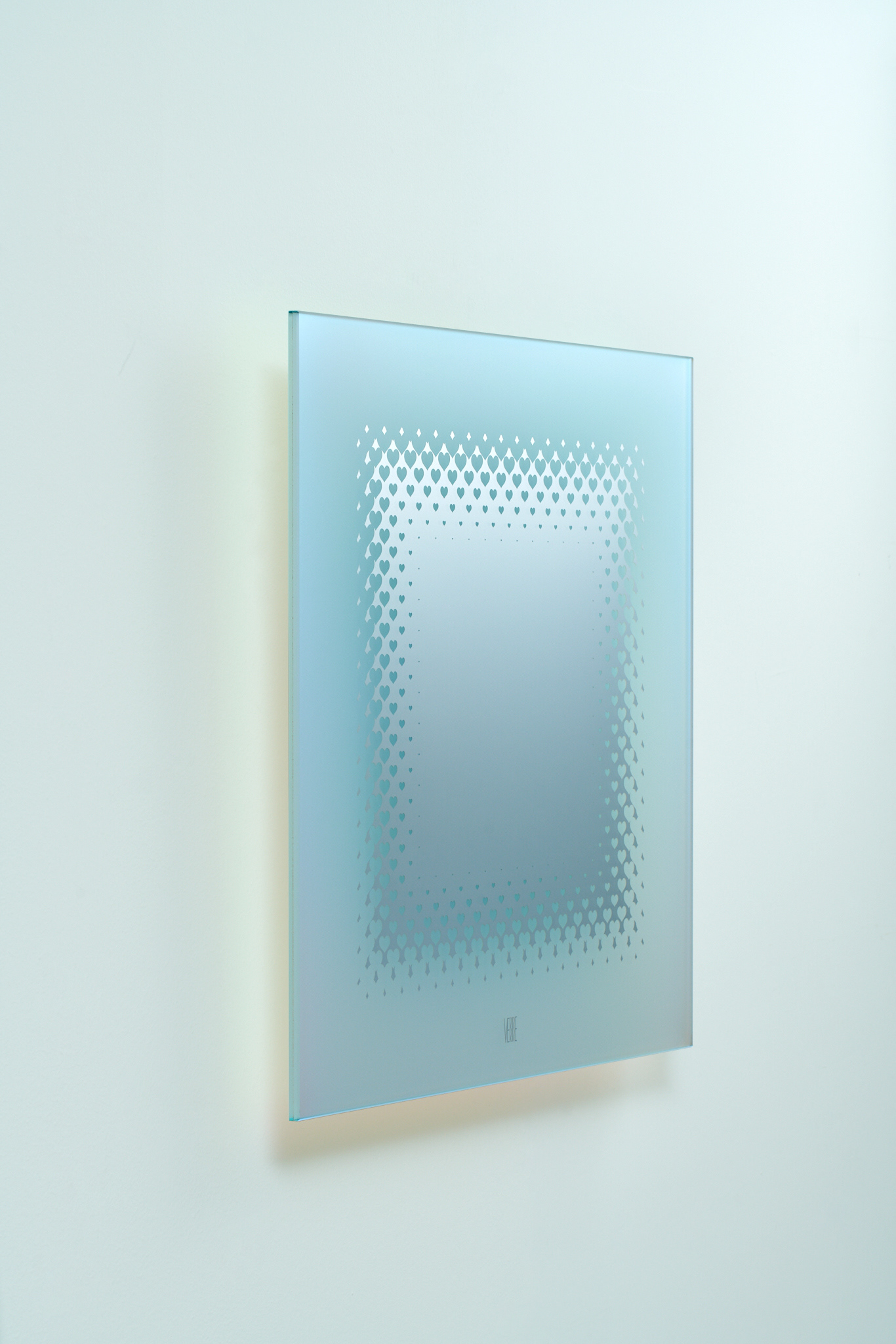 This wall-mounted square mirror was inspired by the song that the waves leave in my heart and the sparkling love remains.